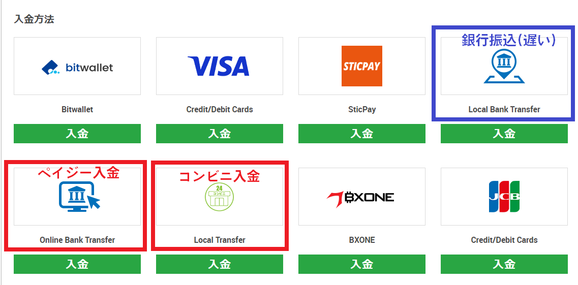 通常の銀行振込は反映が遅く、振込名義人の多少の違いで反映されないこともあるので個人的におすすめしません。